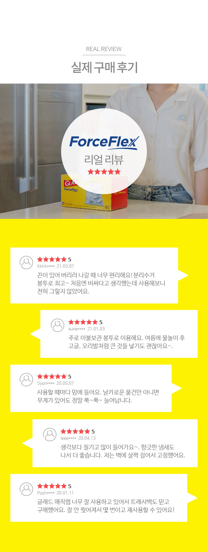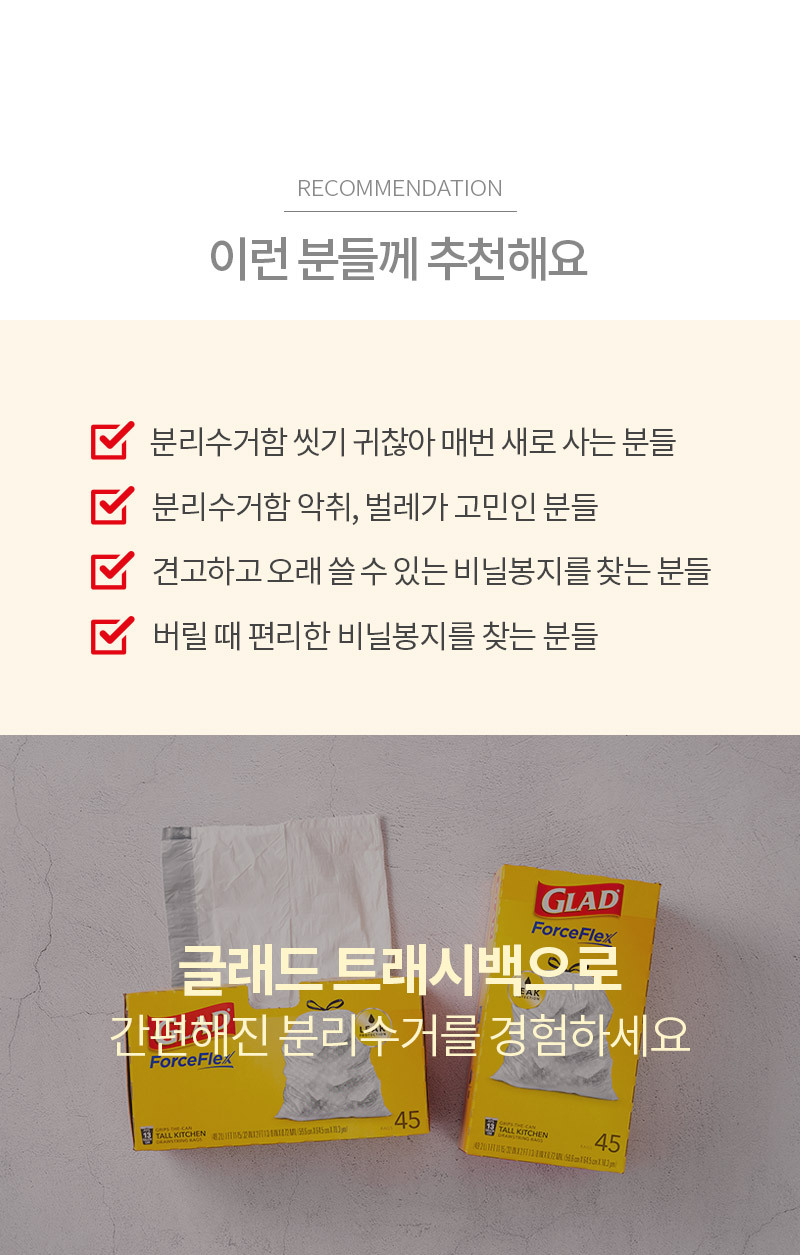 글래드 트래시백 - 49.2L(45매)(2겹으로 튼튼한 재활용 분리수거 쓰레기봉투)